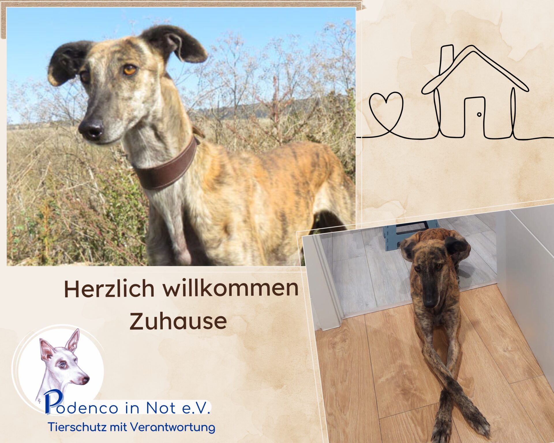 Nach Fragebogen und Vorbesuch kam die Zusage. Ihre Menschen besuchten sie mehrfach, dann war es so weit: Barisha durfte umziehen. Sie lebt nun mit ihrem Galgofreund im Haus mit Garten. Die Kinder der Familie sind mittlerweile erwachsen, das Leben ist ruhig geworden und alle vier teilen sich das große Sofa.