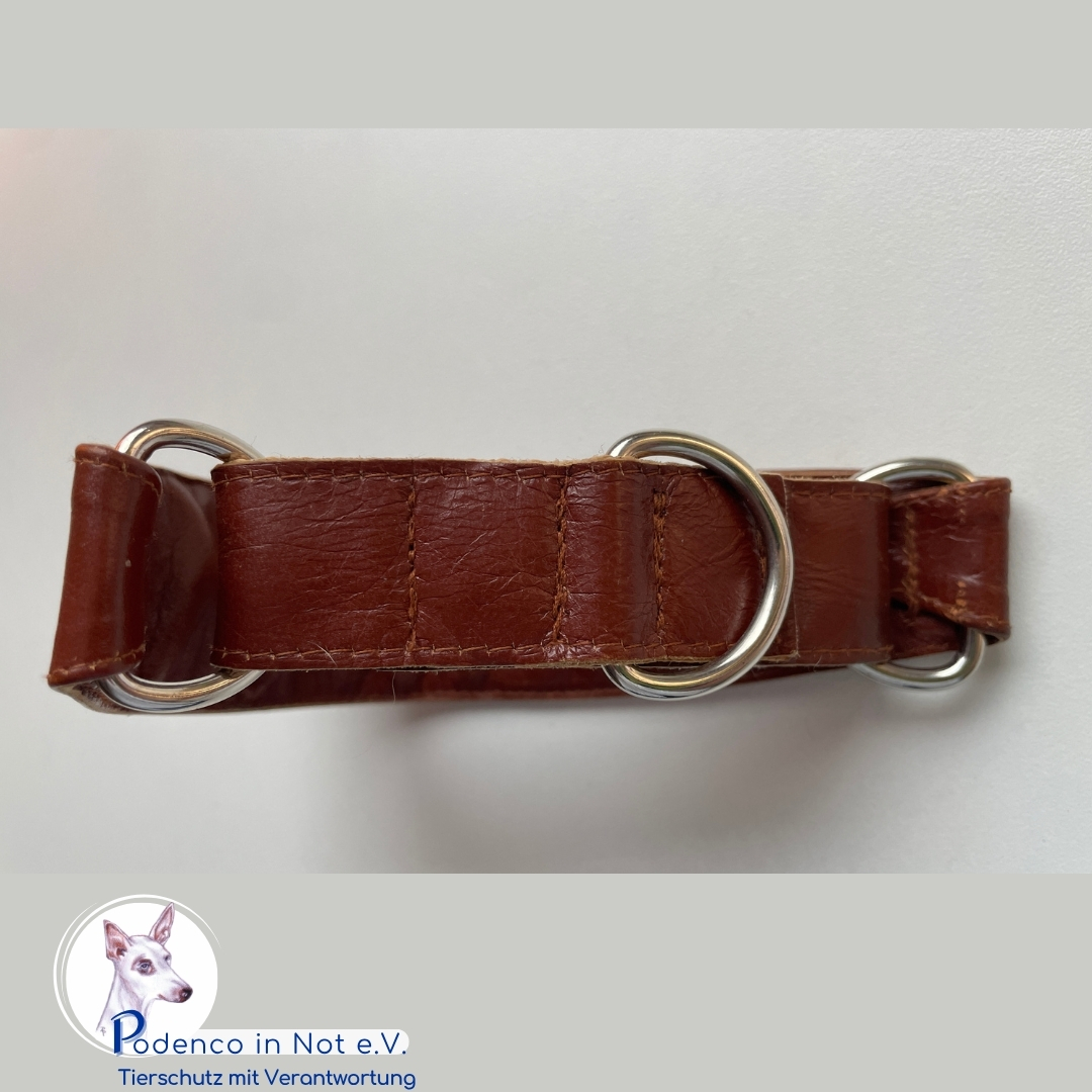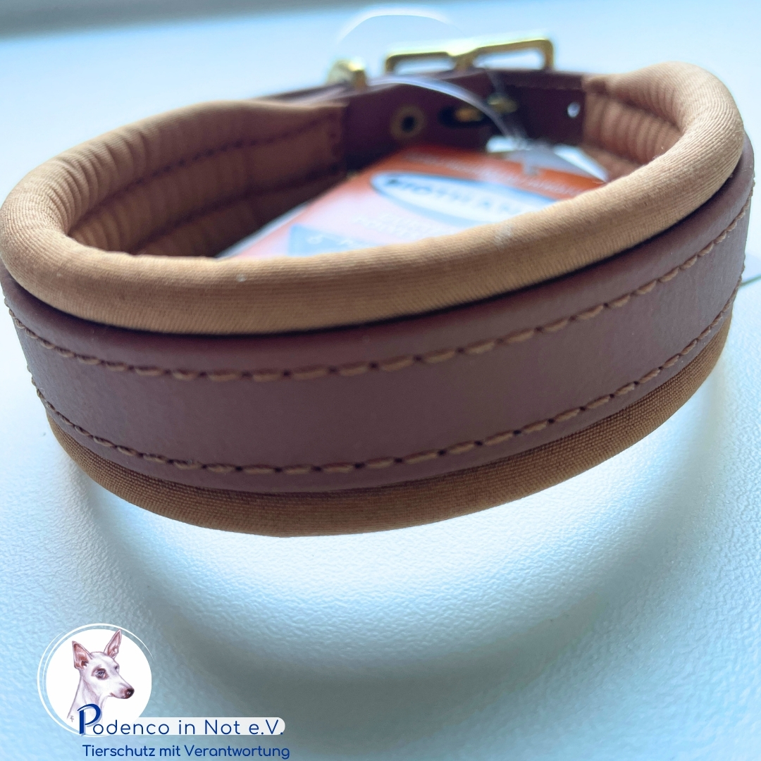 Hochwertiges, handgearbeitetes Windhundhalsband aus tiefrotbraunem, genarbtem Leder, weich gepolstert. Breiteste Stelle 6 cm, passend für Halsumfang 36 cm. Gebraucht, Zustand wie neu.